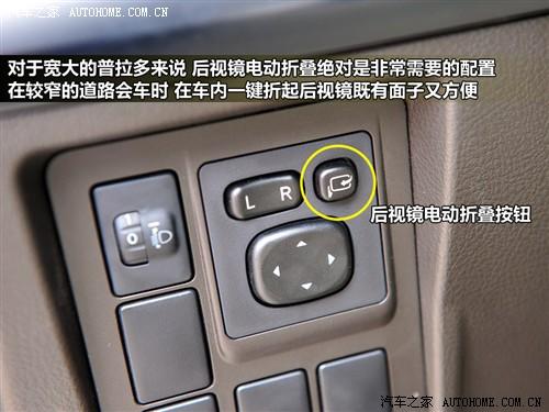 方向盘的左右两侧各有一组控制按钮,左侧为后视镜和大灯调节,值得一提的是普拉多还带有电动后视镜折叠功能,在狭窄路面会车时,这个功能既方便又有面子。右侧的两个按键和安全息息相关,2档起步可用于冰雪路面,车身稳定系统则可防止车辆失控。中控下方的四驱模式切换为旋钮式,比上代的机械把手使用更方便。