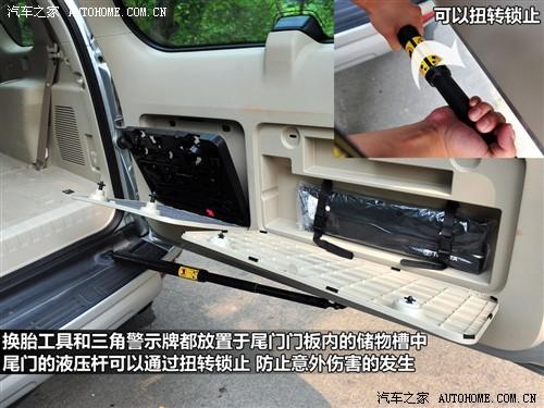 普拉多尾门的液压杆可以通过扭转进行锁止,这样可以有效防止因为误关车门带来的意外伤害,这个设计不需要太多成本但是非常体贴。而另一个小亮点是后备厢内的一个220V交流电源,接些小电器非常方便。