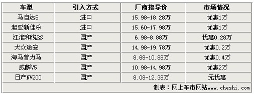 七款车当中有五款车都是国产车型,只有马自达5和起亚新佳乐是原装进口MPV,但是我们可以看到,五款国产车型只有途安的价格偏高,顶配车型甚至超过了两款进口车。自主品牌三款车的价格还是属于较低的区间,在价格上表现出明显的优势。