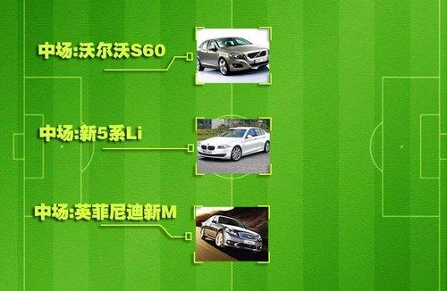 中场的最佳阵容我们把最重要的中场核心位置留给了华晨宝马的新5系Li,在其左右分别是沃尔沃的S60和英菲尼迪的新M系。华晨宝马新5系Li是国内豪华品牌C级轿车中最受关注的产品,该车在海外能够与7系轿车共享技术和零配件,由此可见新款5系Li的技术含量的确不低。