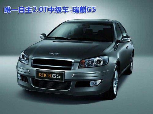 瑞麒G5配备自主研发的2.0T发动机,最大功率输出125kw,235Nm的峰值扭矩在1900rpm即可输出,与其相匹配的是6速手动(6MT)和5速自动(5AT)两种变速箱,不过目前只有6速手动挡在售。