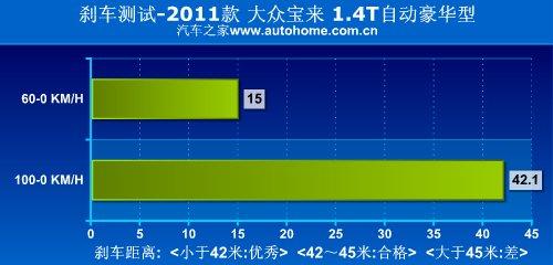 加速测试当然是本次考查的重点环节,因为有之前速腾、高尔夫6的测试——它们搭载的正是相同的动力系统——我们有理由相信宝来1.4T的成绩会在10秒以内,而最终9.7秒的实测成绩也确实是一份让人满意的答卷。