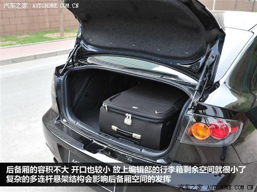 马自达3后备箱容积不大甚至让我感觉有些小,而且离地较高,女士在向后备箱装较重物品时会比较费劲;不过后排座椅可以以4:6的比例放倒,如果偶尔搬运大件行李,这样的设计会有所帮助,但是我认为能力还是有限。