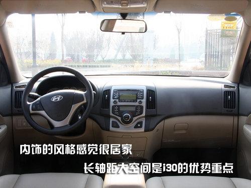 i30动力方面搭载两款发动机。1.6L CVVT γ发动机最大功率90.4kW/6300rpm,峰值扭矩155N·m/4200rpm;而2.0LCVVT β发动机的最大功率为105kW/6000rpm,最大扭矩186N·m/4200rpm。i30配置方面以实用为主,全部车型标配6扬声器音响和AUX输入端口,高/低配车型区别为6碟/单碟CD系统,高配车型还标配了豪华座椅、真皮方向盘、自动空调、以及前排座椅加热等功能。