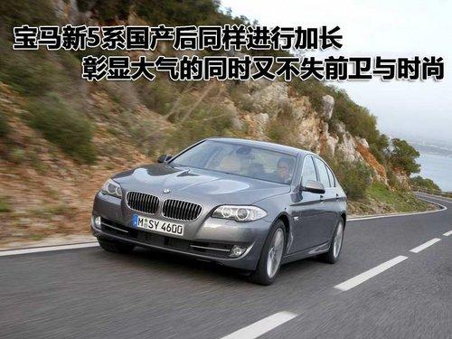 宝马新5系的车身尺寸分别为长4899mm、宽1860mm、高1464mm、轴距2968mm,而国产后的宝马新5系经过加长后轴距将超过三米左右,其内部空间更加宽敞。此外,宝马新5系标配自适应的氙气大灯,而标志性的天使眼也将采用LED元素。宝马新5系尾灯虽然传承经典的“L”造型设计,但转向灯却同样采用了LED元素,彰显大气的同时又不失前卫与时尚。此外,微微翘起的后备厢配合镀铬双尾排设计,让宝马新5系更显动感。
