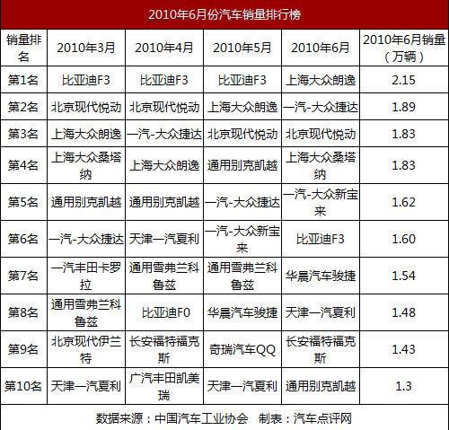 6月份的车市销量堪称风云突变,从销量排行榜上来看,最吸引人眼球的变化还是比亚迪F3的滑落,从蝉联多月第一名、到一落第6名,让自主车型的支持者难免有几分唏嘘;而上月的第二名上海大众朗逸,也自然上升一位,占据了6月销量冠军的宝座。