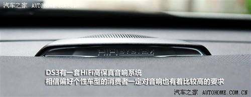 中控面板选用红酒红的烤漆材质面板作为装饰,并非我们常见的金属拉丝或碳纤维,相信大多数人都会觉得时尚个性,但是多想一步的话,烤漆材质抗冲击的能力不是很强,在车内难免磕碰。仪表台上HiFi system的标识告诉我们DS3有一套高保真音响,一般个性车的消费者对音响都有着较高要求,不知道这套设备能否让车主满意。