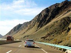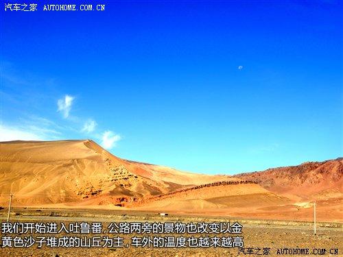 公路两旁开始出现了以金黄色沙子堆成的山丘,车外的温度也越来越高,窗外吹来阵阵的暖风,这也意味着我们开始进入吐鲁番了。在进入吐鲁番之前我们已经经过连了2个小时的赶路,为了安全起见,我们选择了吐鲁番游务服务中心休息,而车主和维修人员则开始忙忙碌碌地检测车辆。