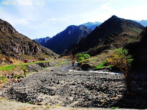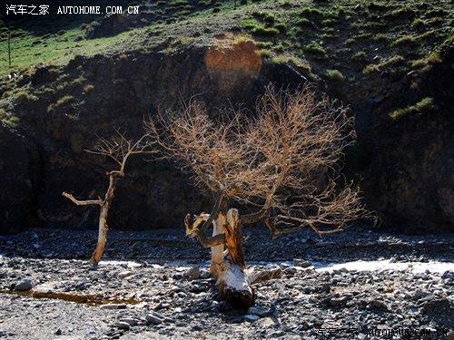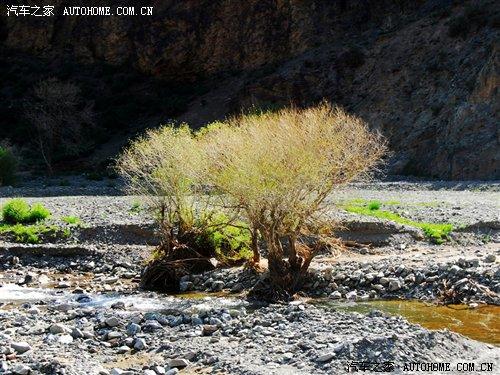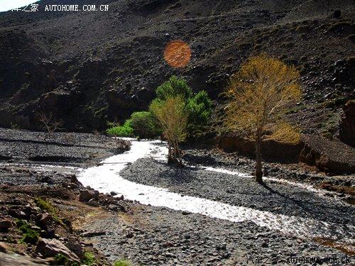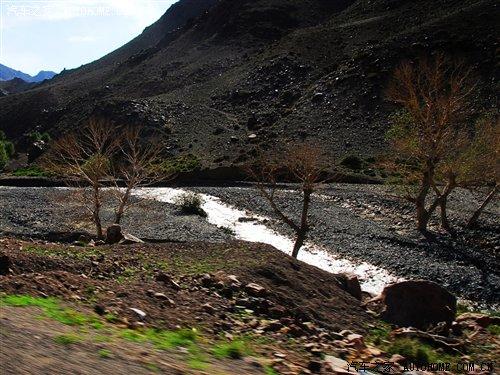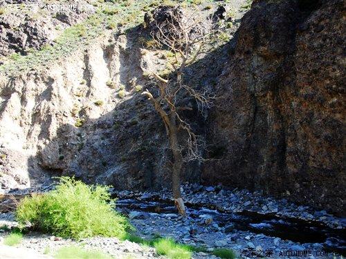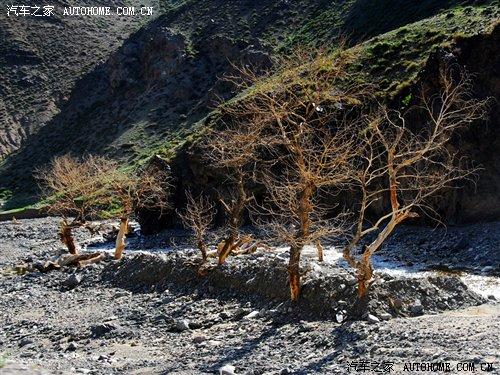 两旁的山对我来说已经不陌生了,所以我把目前转移到了山路旁的小溪,当然小溪也是没有太多的吸引力的,反而是那些干枯的胡杨更令我着迷,没有叶子而且站得笔直笔直的。据了解,这种胡杨常生长在沙漠中,它耐寒、耐旱、耐盐碱、抗风沙,有很强的生命力。这也很难怪在那么恶劣的环境下仍然屹立不倒。