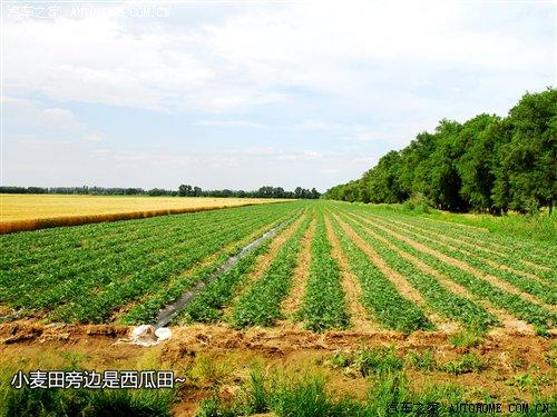 途中我们经过了一些驻彊部队的村庄,在这里可以看到农作物丰收的景象,一片片金黄的小麦田、一片片绿绿的西瓜田、公路两旁整整齐齐的大树等等这些都是当地才有的农村特色,也是当地农业兴盛的最好证明。
