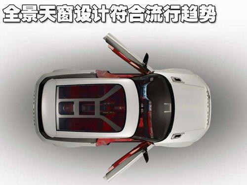 LRX概念车以当下流行的跨界风格,打造出路虎豪华休旅车血统的小型Cross-Coupe样貌,车长4.35m,高1.55m,双门的造型设计让LRX展现出更为浓郁与年轻的动感元素,当然未来量产之后将是四门的造型设计。路虎LRX概念车采用目前比较流行的全景天窗设计,大面积的玻璃车顶将让车内全体乘员尽享阳光沐浴,在车内不会有压抑的感觉。