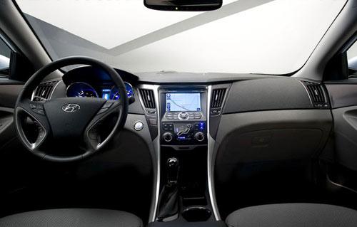 坐在现代YF车中,你很难与老款的索纳塔车型相结合,内饰变得非常时尚与前卫,同时也一改老款索纳塔的桃木装饰条,与而代之的则是我们更钟爱的银色饰条。中控台的设计也十分简洁,但在配置上十分丰富。除导航、自动空调等舒适装备外,全系车型都标准配置了前排正侧气囊,电子稳定控制系统,牵引控制系统,ABS+EBD电子制动力分配,前部主动型头枕和轮胎压力监视系统等等。