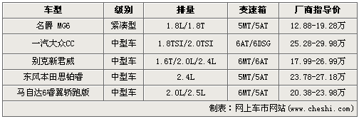 在国内汽车市场中,最先开创轿跑车概念是马自达6轿跑版,它的引进过程让国人第一次感受到了4门轿跑车的独特魅力,同时也得到了很好的市场反应。在之后的一段时间中,合资汽车厂商纷纷推出类似车型,例如别克换代新君威、东风本田思铂锐、以及刚刚上市的大众CC。除此以外,自主企业上海汽车名爵品牌也推出了MG6车型,虽然定位为紧凑级别车型,但4门掀背的设计让、2705mm的长轴距它也理所当然的被列入了轿跑车的行列。