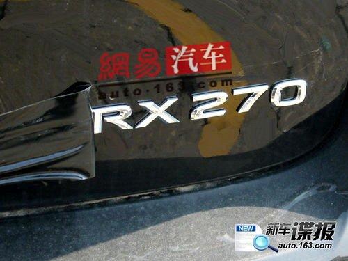 外观上新车和RX350没有差别。从命名来看,新车将搭配一台排量更小的2.7L发动机。从RX系列与丰田汉兰达出自同一平台的情况来看,RX270所搭配机型应该就是汉兰达2.7L之上的IAR-FE直列四缸发动机。最大功率190马力,最大扭矩达到252Nm。