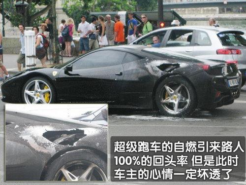 不过近日一则来自法国的消息不仅仅意味着一台名贵的法拉利已经报废,同时也让我们再次将目光投向了超级跑车的频繁自燃。这一次事故发生在法国巴黎,这位身着红色衣服的车主看上去绝对是一个超级的法拉利车迷(从他红色的衣服就能看出来)。据他介绍他的这台崭新的458才仅仅买了几天就这样被烧毁了。