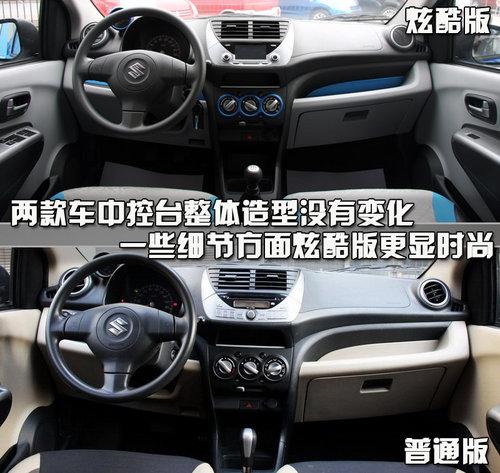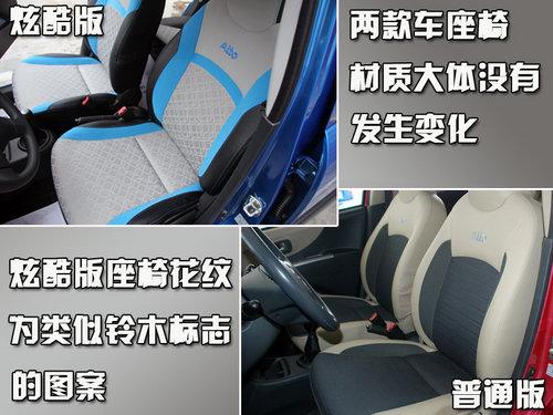 下面是我们都发现了但是可能并不太在意的一个改变,那就是座椅,新奥拓采用的是前绒后皮的座椅形式,不知道为什么设计成这样,前皮后绒不是更好么...炫酷版将座椅的配色进行了改变,同样将外部的色调运用其中。另外,中间的浅色部分还加入了图案,看起来想铃木标志的图案。