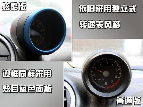 接着是大家普遍都十分欣赏的转速表,了解新奥拓的朋友都知道,新奥拓没有墨守陈规的将转速表和车速表放在一起,也没有使用电子式显示。独立的转速表恐怕我们也就只有在一些性能车或改装车上才能看到。这个设计本就已经为新奥拓加分不少,炫酷版将外缘边框部位也做了处理,蓝色的边框看起来比之前更加律动。