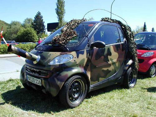 这两部Smart小坦克有都很认真的加上了迷彩涂装,强悍度立刻翻倍,再加上炮管和履带,整个就像是从兵工厂开出来的,不知道各大军武公司有没有从里面得到什么灵感...?