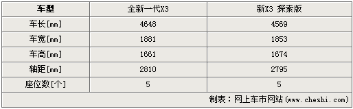 车身尺寸方面,换代宝马X3长宽高分别为4648mm/1881mm/1661mm,轴距为2810mm,全方位提升了整车的内部乘坐感受。相比老款X3,其长度延长了83mm,宽度拓宽了29mm,高度提升了40mm,轴距同时也得到了15mm左右增长数值。车内空间的宽大可想而知。