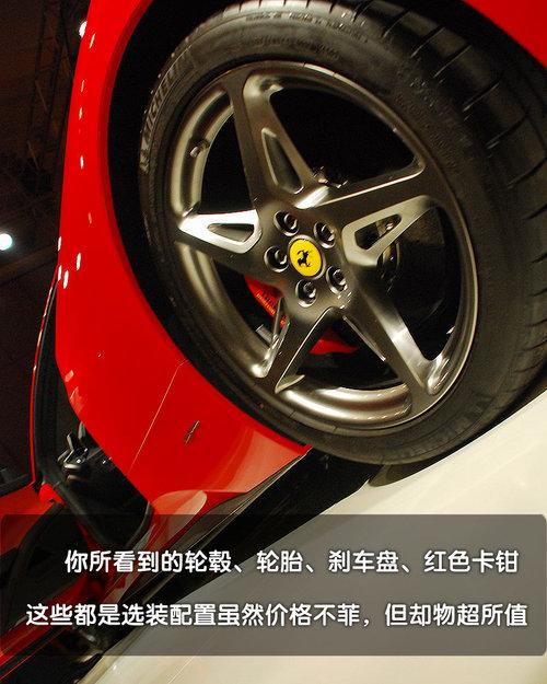 在法拉利的装备表中很多东西都是选配的,例如外观的颜色;轮胎、轮毂的尺寸和样式甚至包括轮毂中央那个小罩子的颜色,以及内饰的颜色和用料。所以任何一位法拉利车主的法拉利理论上都是独一无二的,当然这一切也需要车主去付出高昂的定制费。