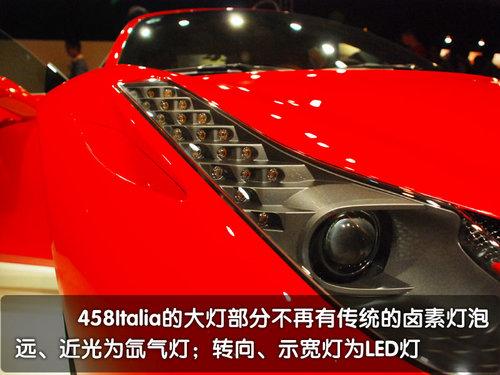 看过刚才为您介绍的那些有关于458Italia空气动力学特性的设计,以及动力系统的特性。在外型上法拉利458Italia还有一些值得说道说道的东西。例如它的大灯系统已经不再拥有任何的卤素灯泡,而是全部使用了氙气灯源组成的远近光;同时它的示宽灯、转向灯也以LED的灯组来实现。而尾灯部分更是简单到只有一个圆形灯组来实现,其内部包含了刹车灯、转向灯的功能。