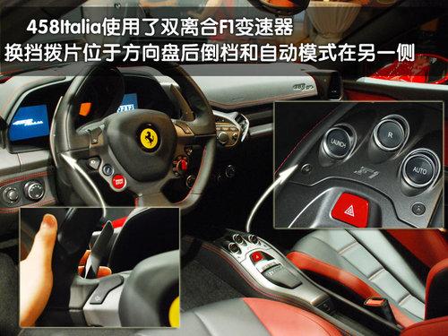 458Italia配备了F1赛车一样的双离合变速器,通常情况下需要通过位于方向盘后方的换挡拨片进行换挡----当然这是为了狂热的驾驶者而设计的,如果是喜欢“舒服”一些的驾驶者也可以按动左右座椅中央的“AUTO”按钮实现自动换挡,倒档的位置同样是独立设计的。