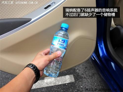 关于储物空间,瑞纳可以说表现还是可以的,基本能够满足日常的需要了,可能遗憾的地方就是两点,一个是后门板为了照顾音响系统,牺牲了后门储物槽;另外前门板储物槽把水杯架设计在中间,这样如果有比较长的物体需要存放,就只能让水瓶换位置了,但是如果设计在两端的话,这个问题就解决了。