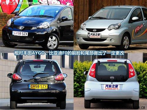 比亚迪F0是目前非常受欢迎的微型车之一,可爱靓丽的造型尤其吸引年轻人的目光,在整个微型车领域中的销量也是名列前茅,当然这与它亲民的售价也是分不开的,然而它俊俏的外表和可爱的内饰却与丰田旗下的两款车有着极度的相似。