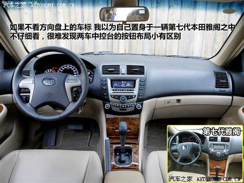 第七代雅阁的风格同样也延伸到F6的车内,无论色彩搭配、整体造型都非常雷同。尽管这已是几年前的设计,但现在看起来并不过时,甚至依然有些时尚之意。如果不仔细看,很难发现两车的中控台按钮布局还是小有区别的,模仿功底的确不错。
