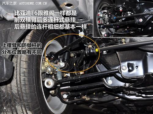 比亚迪F6的模仿并没有仅仅停留在表面工作上,前双横臂后多连杆的悬挂形式也是从本田雅阁上借鉴过来的,后悬挂连杆的粗细程度都与原型车上的基本一样,其实这也不是坏事,借鉴国外成熟的底盘设计也是加快进步的途径之一。