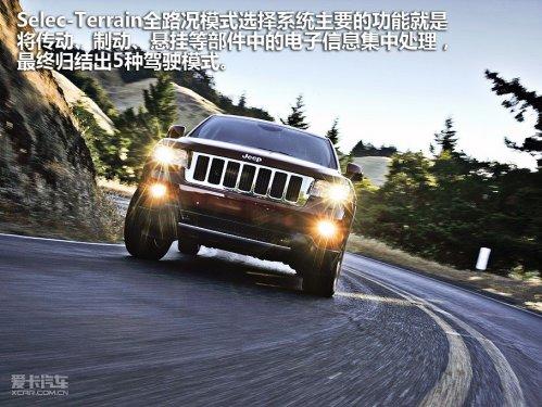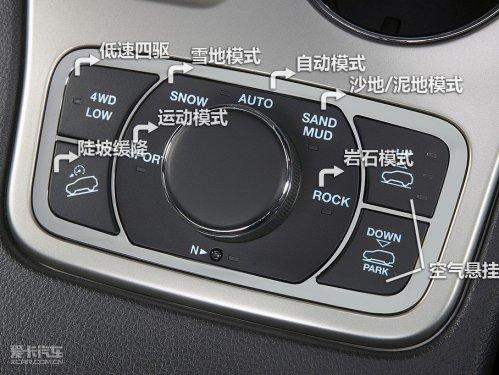 之后再来说说Selec-Terrain全路况模式选择系统,对于这套系统来说,我们可以在大切的竞争对手中找到一些与其类似的电子系统。不过竞争对手们似乎更集中于越野路况,大切却把公路路况也纳入到了选择中,为都市一族提供了更合适、更人性化的选择。这套Selec-Terrain全路况模式选择系统主要的功能就是将传动系统、制动系统、悬挂系统等部件中的电子信息集中处理,最终归结出5种驾驶模式,分别为沙地/泥地模式、运动模式、自动模式、雪地模式以及岩石模式,令驾驶这种传统硬派越野车不再成为难事,只需根据您行驶的路面状况选择相应的驾驶模式,新大切就会自动的为您调整好一些电子设备,是狂野行走还是高速疾驰只需转换一个驾驶模式即可。