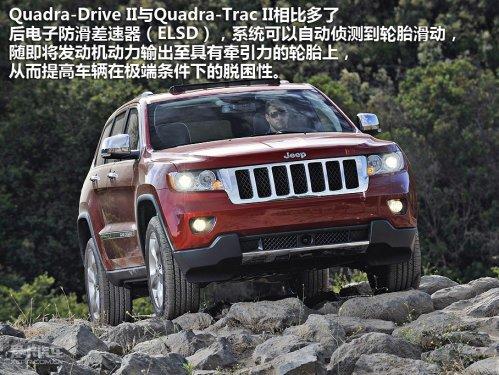 Jeep为新大切准备了两套不同的四驱系统,升级后的Quadra-Trac II全时四驱系统在大部分时间中向所有车轮传递动力,在系统检测到某个车轮需要更多牵引力时,通过接通离合器组,从而能将最多100%的动力分配至前轴或者后轴。