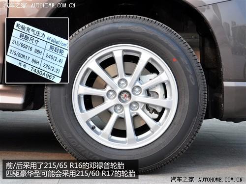从新车轮胎充气压力中文标识上可以看出,2.0四驱舒适型采用了尺寸为215/65 R16的邓禄普轮胎,2.0四驱豪华型很可能会用215/60 R17尺寸的轮胎。