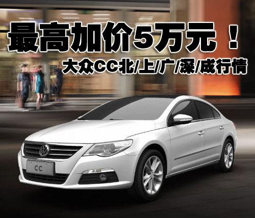 国产的大众CC于不久前正式落户一汽-大众,搭载1.8TSI与2.0TSI的国产大众CC售价区间为:25.28-29.98万元,在价格方面给了我们不小的惊喜。刚上市不久的国产大众CC受到了具有独特品味的消费着追捧,那么目前市场的情况如何呢?我们选取了国内汽车消费比较时尚的北京、上海、广州、深圳、成都5个城市进行了调查。目前,国产大众CC在这5个城市最高加价达到了5万元。