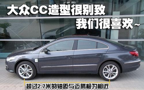 大众CC的外形尺寸是一款标准的B级轿车,不到4.8米的车长、2.7米的轴距都与PQ46平台的迈腾极为相近,但是车款方面比迈腾更为宽大。此外通过外形上的线条设计,它的设计师将其变成了一款跑车味儿十足的轿车。