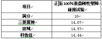 在这一环节的测试上,科鲁兹和三菱翼神表现不错,思域在胸部保护方面略有失分。