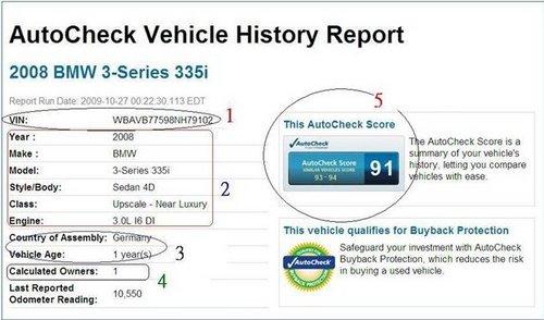 AutoCheck report与美国部份州的监理所(DMV)有合作关系,因此如果您上美国监理所(DMV)的网站,监理所都会建议您在买车的时候,一定要检查AutoCheck报告,在AutoCheck报告可能可以提供您买车的重要参考资料-如经历多少任车主,里程数为何,何时何地挂牌,是否有出过交通事故,车籍资料是否干净(如Lemon car, Salvage or Junk title),等等历史资料。另一份也一定要了解的是CarFax。