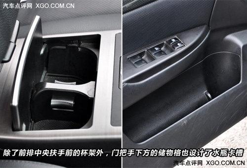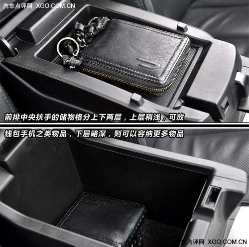 前排空间中,除了当把后面的两个杯架以外,门把手下方的储物格也特别设计了放置水瓶的卡槽,可以将水瓶稳固的放置其中,中央扶手的储物格分上下两层,上层稍浅,可放小物件,下层略深则可以容纳更多的物品。