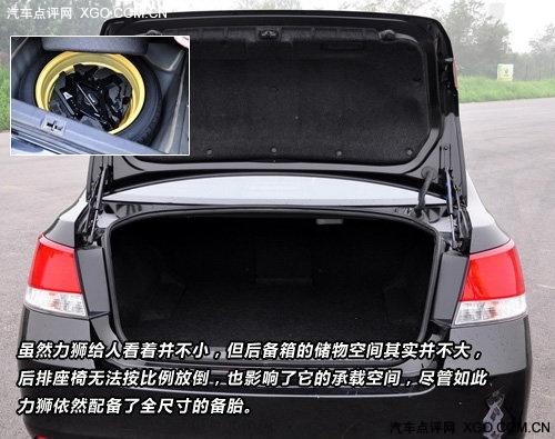 车内有有一处超大的眼镜存放处,这么大的眼镜盒还是真的很少见,不仅能放下普通眼镜,按尺寸看,连雷鹏的大墨镜放在里面也应该没有什么问题,内置绒布,以防止镜面与内壁的摩擦。虽然眼镜盒超大,可该大的地方却并不如人所愿,在外观上和内饰上,力狮看着都不小,但偏偏后备箱的储物空间却不大,后排座椅也无法按比例放倒,同样影响了承载空间。尽管后备厢空间不是那么的大,但力狮依然配备了全尺寸的备胎,如果换成非全尺寸的话,空间应该也会得到些许的提升吧。