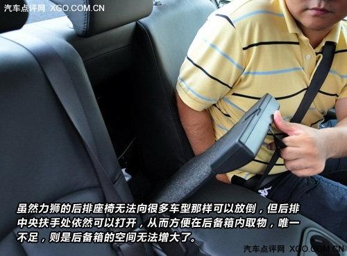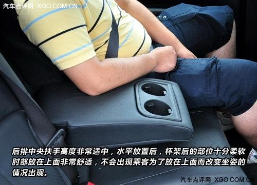 当然如果排除后排的第三个人,一个人或者两个人坐在后面,还是很舒适的,后排的中央扶手不仅宽大,而且高度适中,水平放置后,位于杯架后的部分真皮包裹,十分柔软,肘部放在上面的角度也合适,即使杯架内放置了水瓶,乘客的胳膊也不会受到丝毫影响。更不会出现乘客为了胳膊支撑在扶手上而采取一个很不舒服的坐姿的情况。力狮的后排座椅无法放倒,却可以从中央扶手的靠背处打开,方便从后备箱内取物。