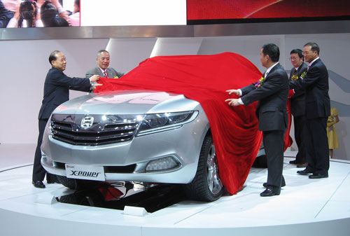 X-power概念车是广汽集团汽研院针对高端用户而量身打造的一款品位高雅的混合动力四驱SUV车型。广汽X-power概念车型采用了宽大的V型的横条进气格栅,辅以镀铬装饰设计。前大灯采用扁平式设计,但都采用LED照明系统,雾灯则采用比较普通的乳白色塑胶材料。广汽X-power概念SUV的车头非常饱满,但整车侧面的线条却也非常流畅。另外,这款车的轮毂采用造型独特的五幅式造型,外观非常时尚。而外后视镜则采用小巧的三角形设计,体现出科技、动感的一面。