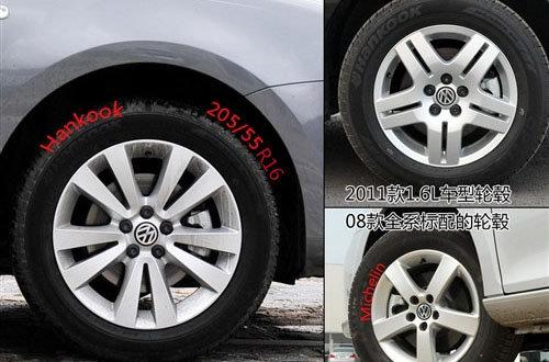 宝来此次改款的重点是动力和内饰,所以只对外观进行了细微的改变。比较明显的变化来自轮毂,新宝来1.6L车型和1.4T车型都使用了全新样式的轮毂,相比08款简单的5幅轮毂,2011款的两种5组10幅轮毂显得更加动感。