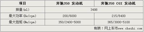 奔驰的CGI压电直喷引擎不仅已经应用在国产奔驰新C和新E等1.8T涡轮增压车型上,而且3.5 CGI发动机也在海外奔驰E350 CGI和CLS350 CGI等车型上广泛应用。此款350 CGI引擎最大功率和扭矩高达215Kw和365Nm,较普通3.5V6引擎分别提升了15Kw和15Nm,同时平均油耗降低10%。