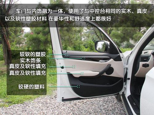 BMW X1的内饰用料比较厚道,在车门部分与人体杰出的地方都用到了软性的材质例如软性的塑胶、真皮以及柔软的填充物,与内饰中控台面板采用相同材质的装饰条保证了整车豪华并且运动的气息。