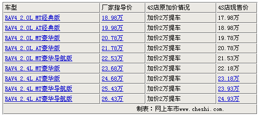 RAV4自去年4月份上市以来,凭借超高的性价比得到众多SUV车友的喜爱,丰田RAV4是定位在一款城市SUV,它配置了主动扭矩分配控制四轮驱动系统,同时兼备在城市道路和越野路段的优异行驶性能。据网上价格监测系统显示:丰田RAV4豪华升级版现已到店销售,RAV4最高优惠达到了15000元,最低仅售17.98万,具体详情请见下表: