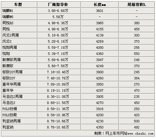 通过看以上数据我们可以发现,并不是所有的车型三厢版都比两厢版的尾部容积大。价格方面,也并非全部的三厢版都比两厢贵,有些车型价格一直,还有些车型的两厢版高配版本甚至超过了三厢版的售价。所以,在我们选择经济型家用小型车的时候,需要考虑的方面还是很多的,实际操作一下会更容易让我们做出决定。