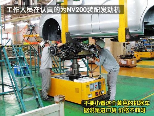 工作人员在认真的为NV200装配发动机,这个工作可得一丝不苟。协助工作人员工作的是一台原装进口的小车,据说这个小车的造价相当高,不知一台NV200可不可以换购?