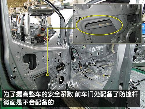 在车辆进行组装时,我们发现到在前车门内部配有一根很粗壮的防撞杆,防撞杆加强了车身在发生碰撞时的车身强度,这个不拆下车门板是看不到的。
