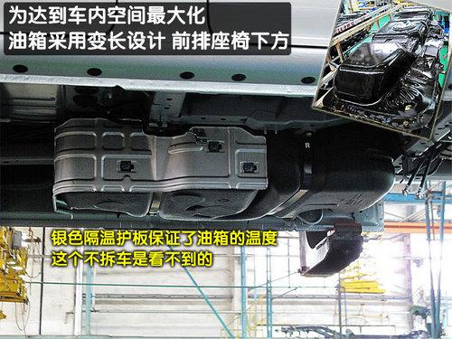 在总装车间里我们发现了NV200的油箱,NV200为了更好的是车内空间最大话,采用了扁平的油箱设计,油箱位于前排座椅下。在油箱前侧还发现了隔温护板,以保证油箱的温度。相比这个是不来生产车间是看不到的。