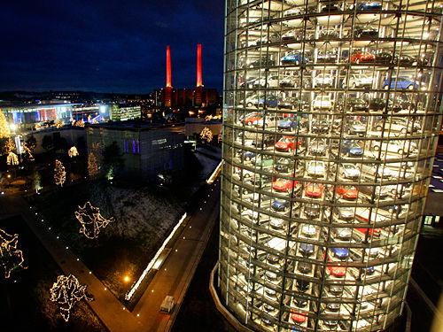大众汽车公司以汽车为主题的游乐园——大众汽车城 (Autostadt),包括一个汽车博物馆,驾驶演习场,供参观的汽车工厂和这两座20层的立体车库——“汽车筒仓”。
